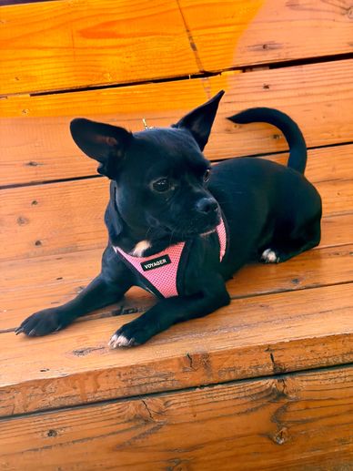 Another special delivery from Pilots and Paws. Billie Jean AKA Winona is a super sweet 1-2 year old Chug. She alternates between playing with the other dogs and snuggling with her foster parents. She doesn’t mind the cats and is crate and potty trained. Location: Auburn, CA.